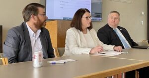 Read More Kim Evans, center, announced Friday she was retiring from her position as director of the Family Support Division. She’s pictured here speaking to