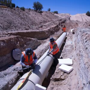 Read More Construction workers in an undated 2020 photo, working on the Navajo-Gallup Water Supply Project. The project aims to pipe clean water to the