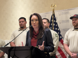 Read More United States Agriculture Secretary Brooke Rollins speaks to reporters in Santa Fe on Monday. (Photo by Julia Goldberg/ Source NM) United States Agriculture