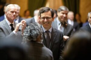 Read More Gov. Bob Ferguson makes his way through the room prior to being sworn in on Wednesday, Jan. 15, 2025, at the Washington state