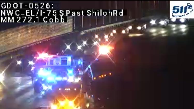 Georgia Department of Transportation cameras show emergency crews on the scene before Wade Green Road.