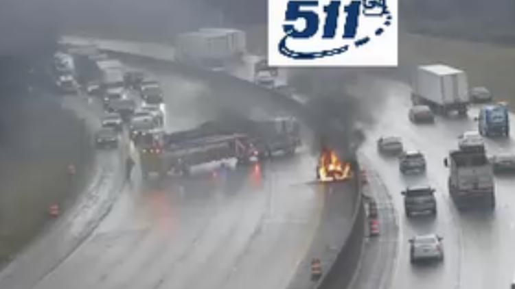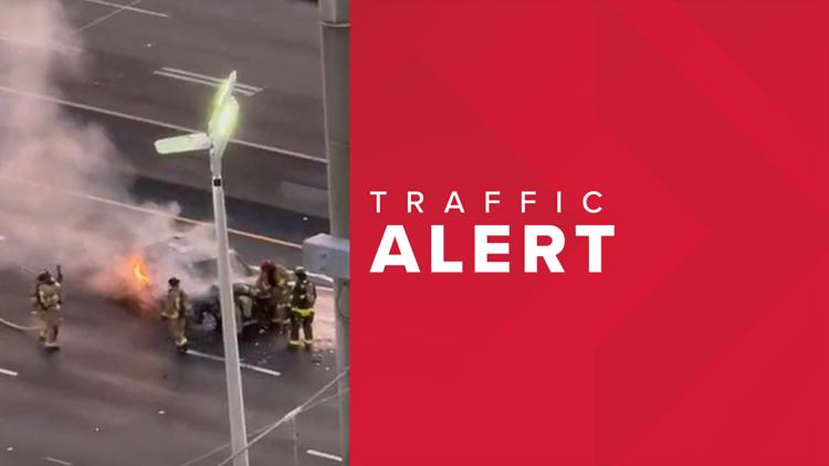 According to GODT, the vehicle fire occurred before 17th Street and has closed several lanes during rush hour.