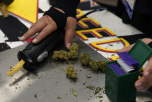 Read More A woman demonstrates a motorized marijuana bud trimmer at the Speedee Trim booth at the INDO EXPO cannabis trade show on Jan. 27,