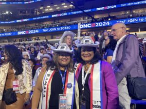 Read More Washington state Democratic Party chair Shasti Conrad (left) and Democratic U.S. Rep. Pramila Jayapal of Washington (right) at the Democratic National Convention in